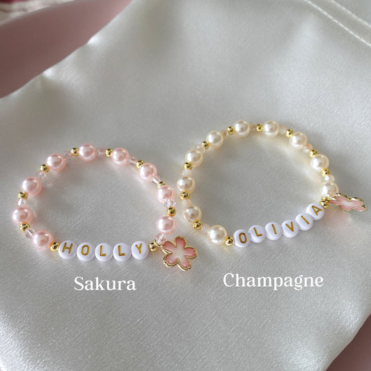 Personalised Name Flower Girl Charm Pearl Bracelet