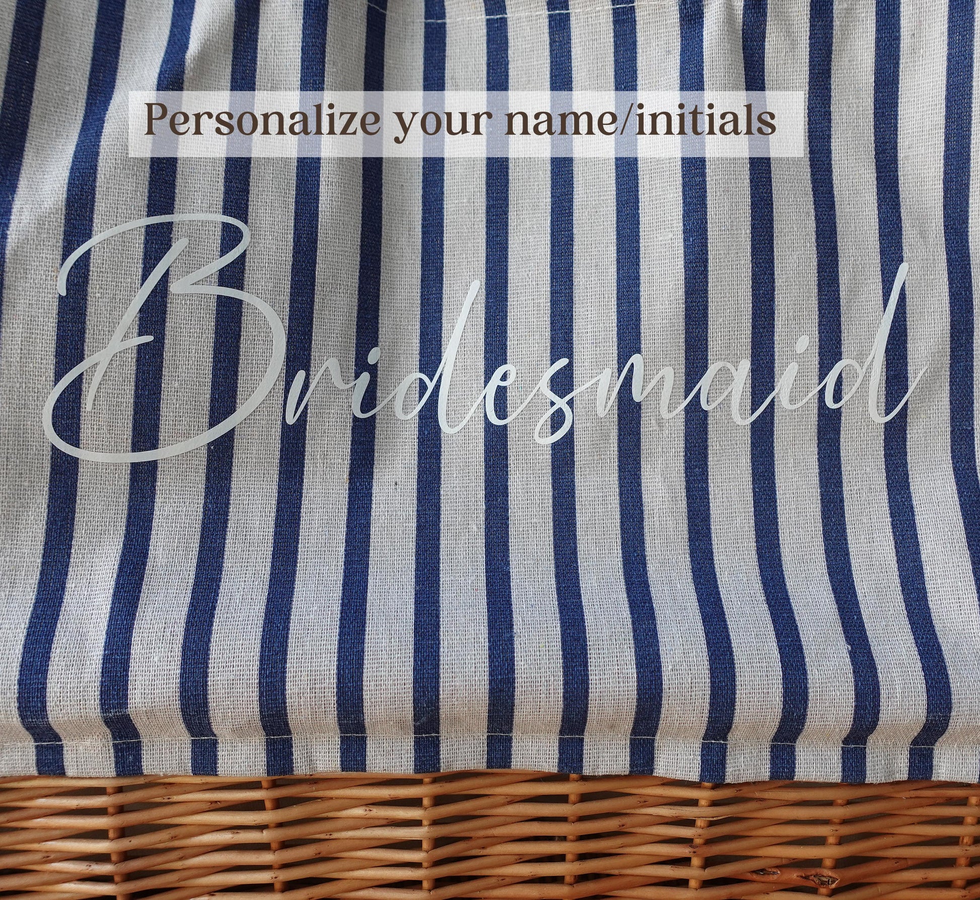 Customized striped Linen Rattan Bag, Personalized Bag